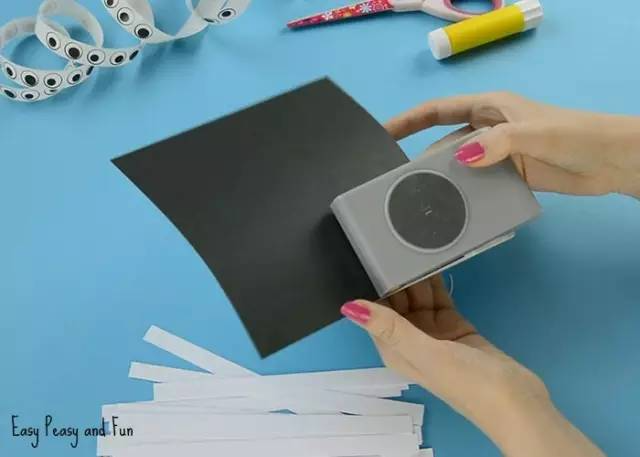 材料与用具:白色/黑色卡纸、剪刀、胶水、眼睛贴纸、吸管