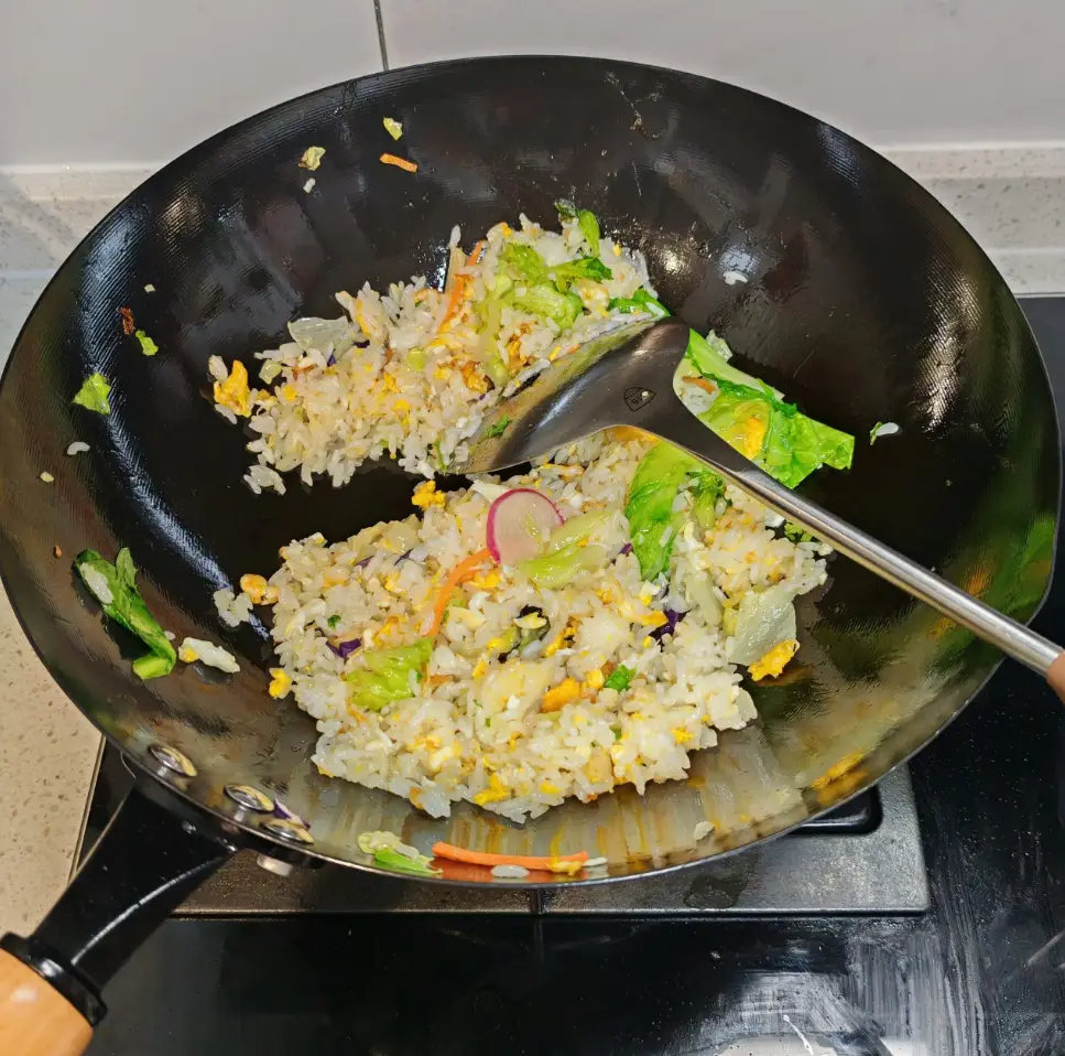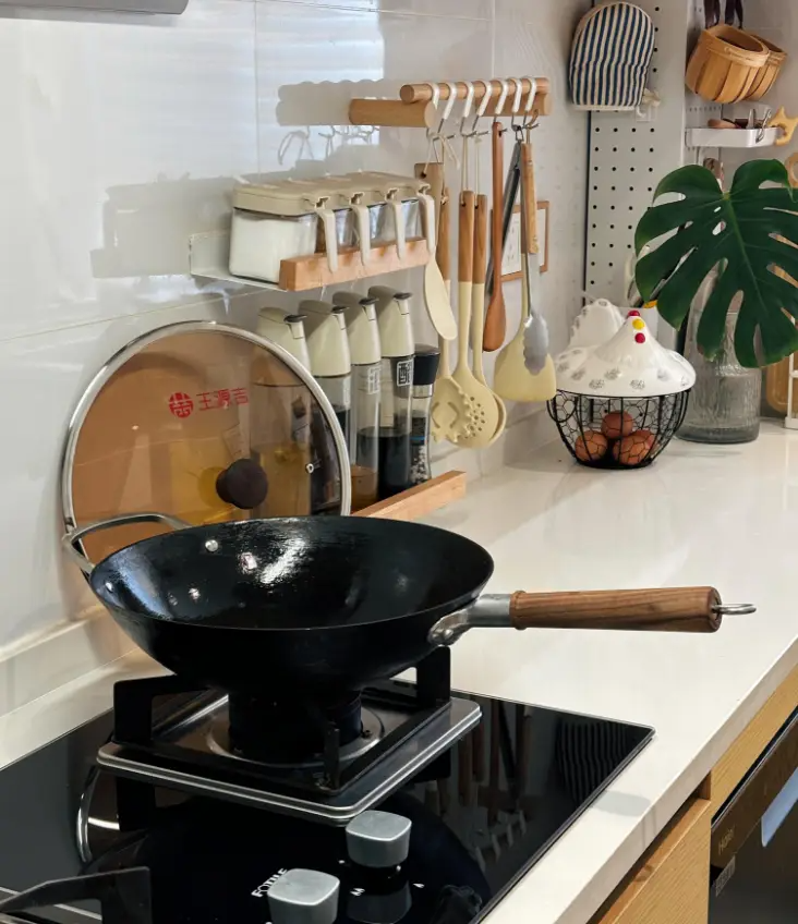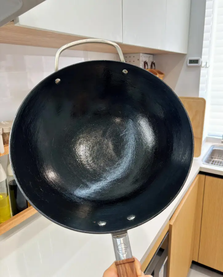 2)前期每次炒完菜不要急着洗锅,等下次炒菜前再洗,铁锅就是要靠油来养,等真正养好后就可以按正常方式使用了。