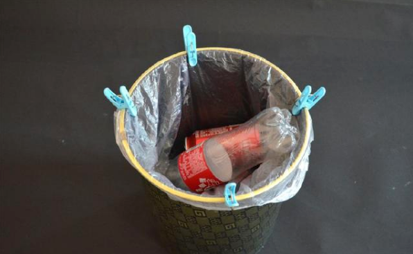 往垃圾袋中倒垃圾时,可先找来两个晾衣夹,把垃圾袋两边夹在某处,使袋口保持张开,可避免一些垃圾散落到地上。