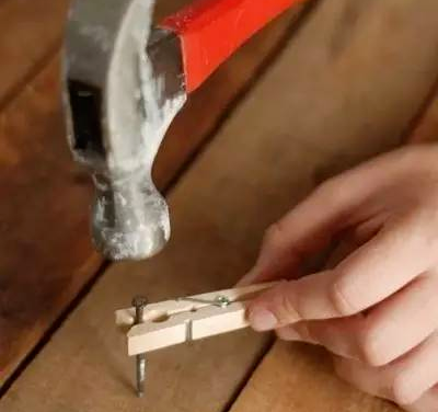 钉钉子的时候,在不易下锤的地方,用一个晾衣夹夹住钉子,能防止锤子锤到手指。