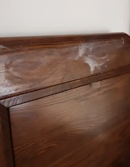 酒精会把木头里的油分洗掉,导致表面发白、掉色,甚至干裂!