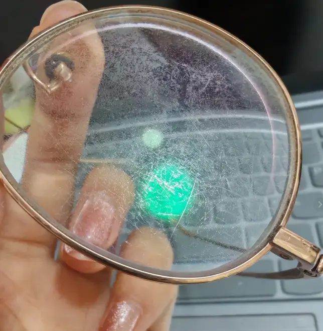 酒精会把镜片上的防蓝光膜、防反光膜洗掉,导致镜片模糊!