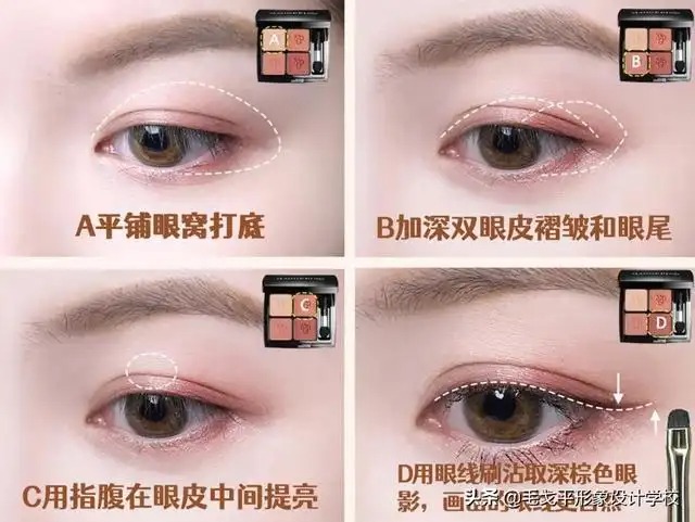 对于新手来说,四色眼影盘最方便,配色深浅有层次,能够很好地打造立体感,最多不要超过六色;同时眼影的颜色不要太跳,以暖色系为宜。