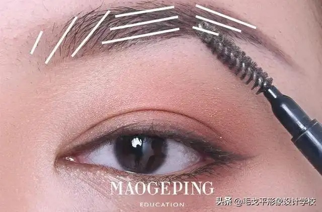 顺着眉头斜向上画三笔;平着在眉腰画三笔;顺着眉尾方向向下画三笔。最重要的一步,用「眉刷」将眉毛画出的线条晕染自然。