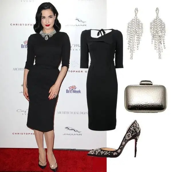 搭配: 胯部较宽的女性则适合穿着拥有合身剪裁的连衣裙或半身裙,从而展示曼妙身材。不妨借鉴Dita的装扮,选择一条勾勒出玲珑曲线的黑色连衣裙,搭配的细腰带不仅可以提高腰线,拉长全身比例,还令腰部显得更加纤细。建议佩戴光泽度较高的夸张配饰,令这套造型璀璨生辉。