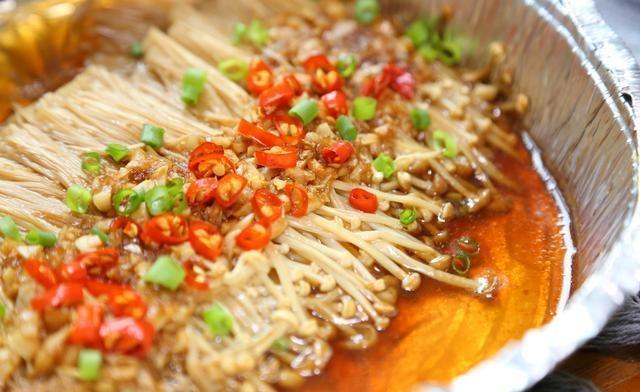 食材清单:金针菇,小米椒,生抽,蚝油,鸡精,油,大蒜,食醋。