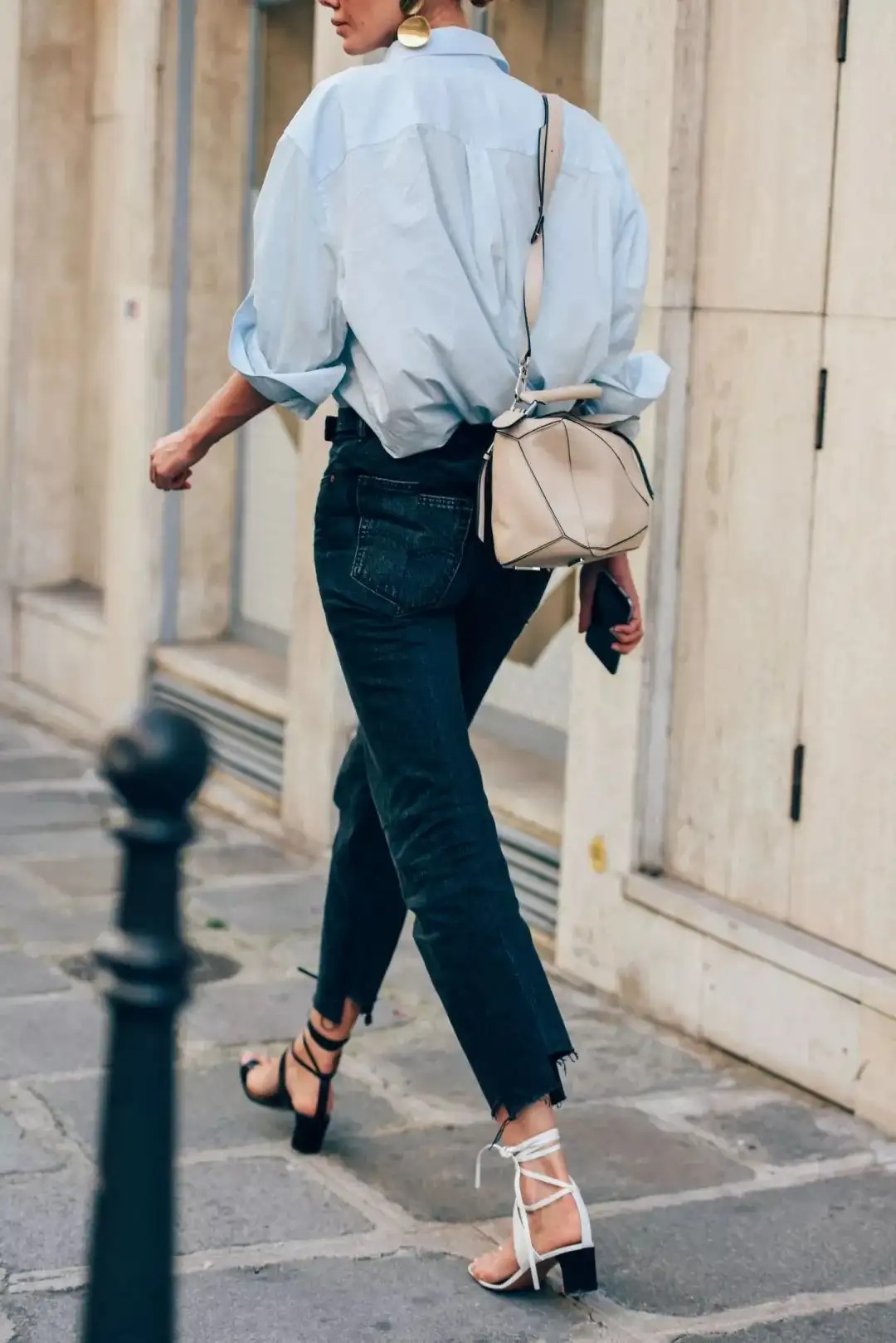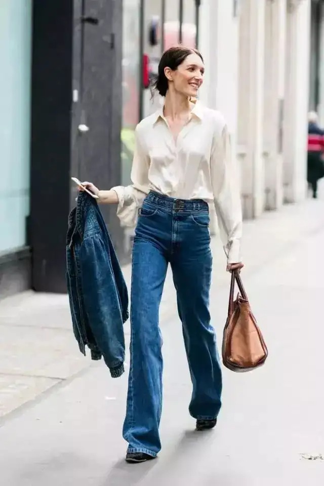 搭配短上衣,无限拉高腰线,搭配高跟鞋,显腿长 100 分!