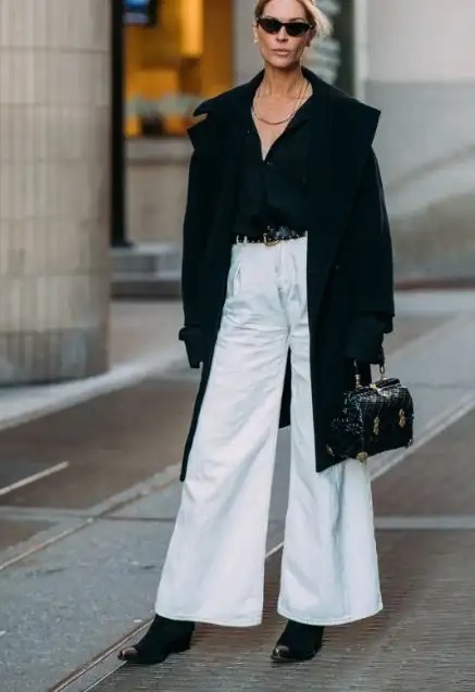 今年很流行白色阔腿裤的搭配,可以搭配袜靴、板鞋,很百搭哦,重点是藏肉显瘦~