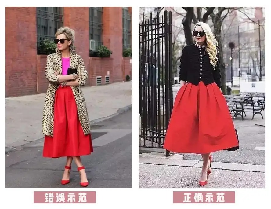 因为伞裙的版型比较蓬的缘故,所以不适合搭配长款的外套,会显得累赘和格格不入!
