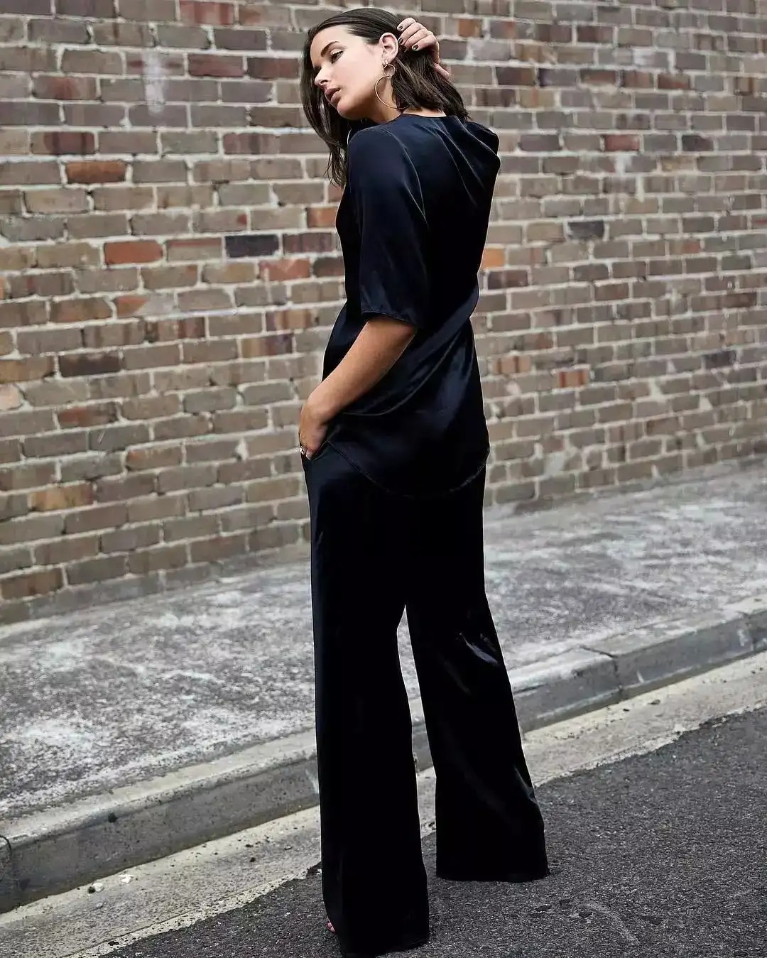 这时候不得不再次安利阔腿裤和直筒裤!不过在挑选的时候,首选面料硬挺的裤子,这样穿上不会那么贴身,就能达到修饰身材的效果啦!