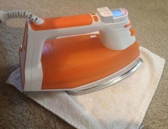 ▼去除地毯污渍:一整块地毯清洁起来很麻烦,可以重点清洁污渍处。用等量的醋和水混合后装进喷雾瓶中,在污渍处喷上几下,放一块湿抹布覆盖污渍,把烙铁打开蒸汽模式加热30秒,你会发现原来的污渍消失了。