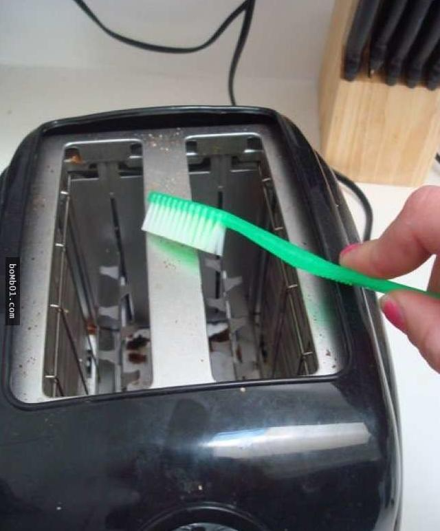 ▼用牙刷对付死角。所有难以用手触摸的死角的缝隙,交给废旧牙刷就迎刃而解。像是面包机的缝隙,小牙刷可以轻松搞定。