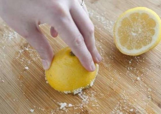▼砧板清洁:天天切菜的砧板可是健康的隐患,想要清洁砧板可以试试柠檬和食盐。把食盐洒在砧板上,用切开的柠檬来回擦拭砧板上的盐,再用热水冲洗干净。这样清洁后的砧板,干干净净还有清香。
