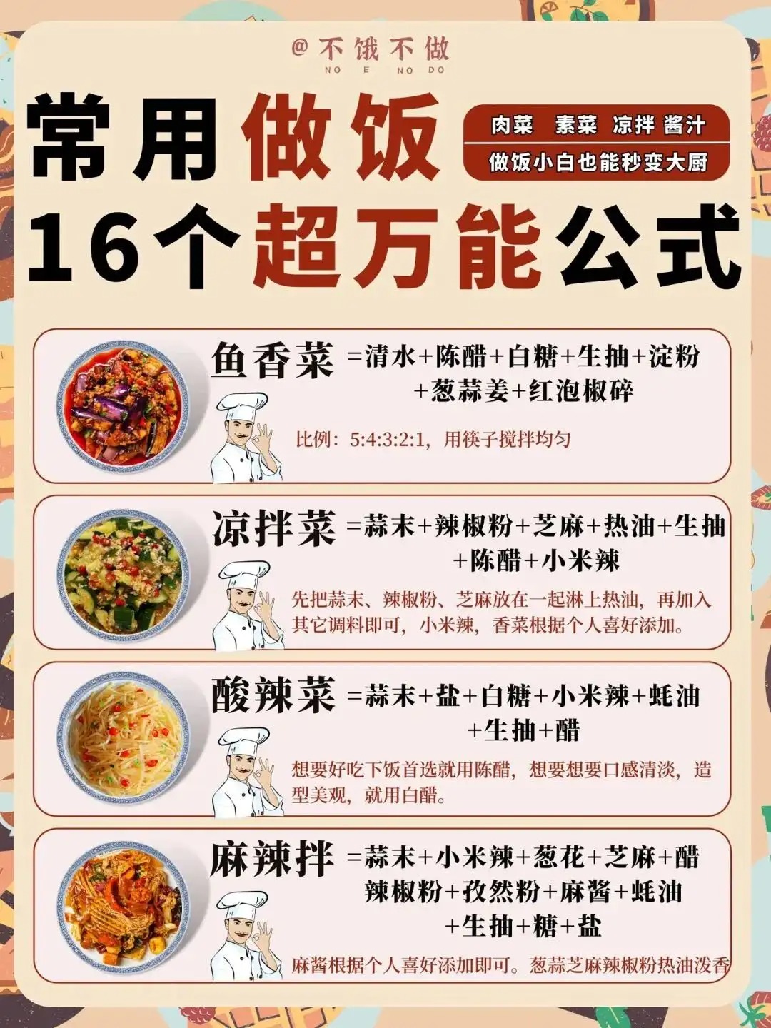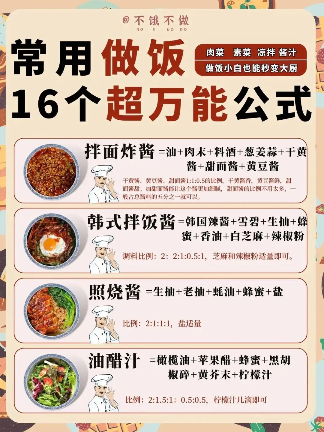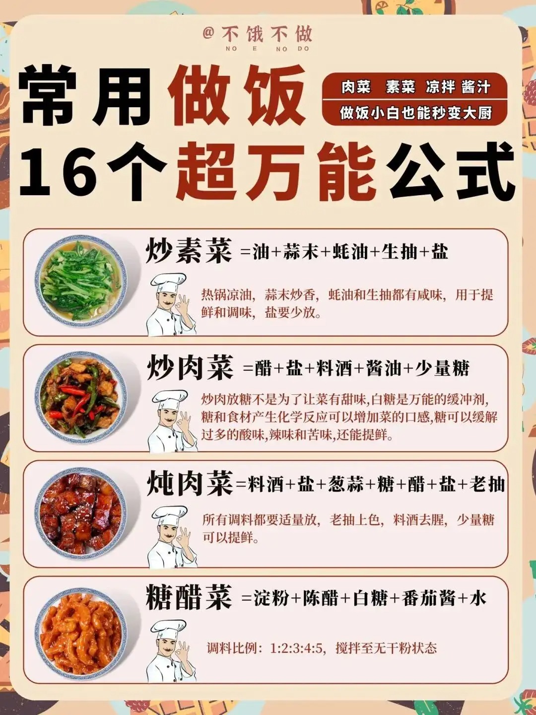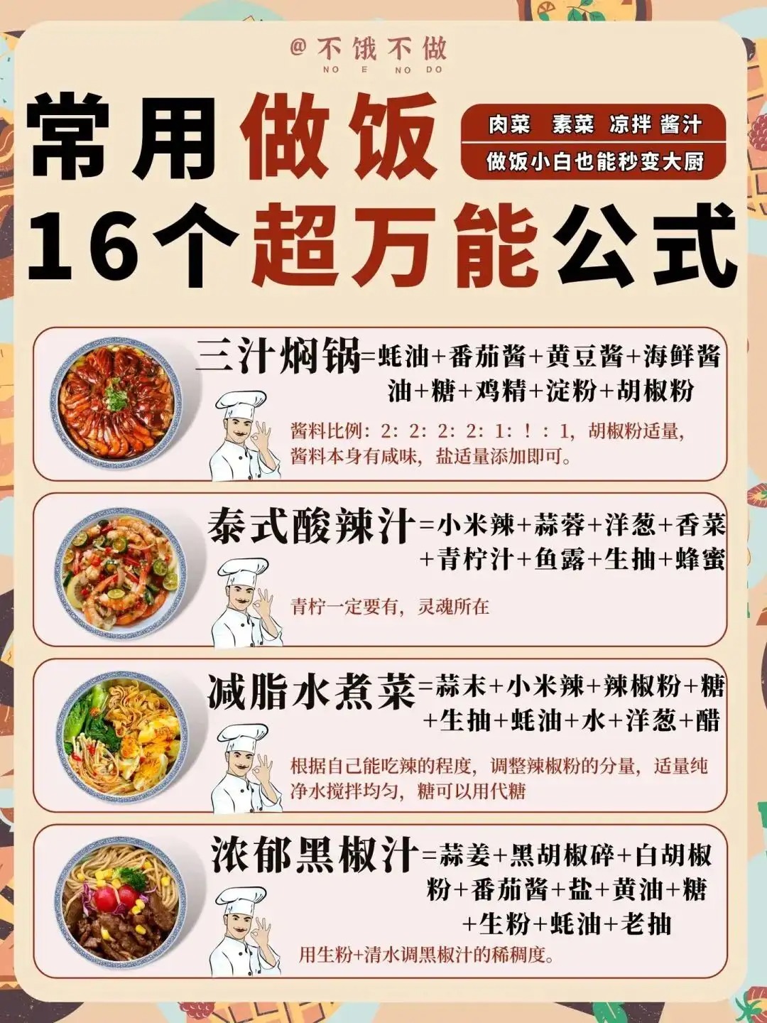 美食教程:做饭小白也能秒变大厨,16个超万能公式!