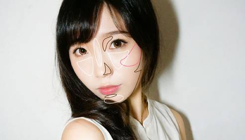 腮红:笑起来苹果肌的最凸处为顶点,向太阳穴方向斜上刷,整个腮红范围不宜超过鼻子,不然会有脸部下垂的反效果。
