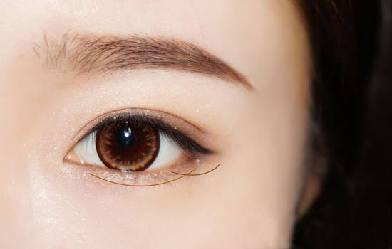 第四步:使用眼线笔填补内眼睑画内眼线,之后将睫毛之间的空隙填满,描绘出基本眼线,外眼线可以略微粗一点,由于新手可能做不到眼线画得很平整,这也没关系,大致画出形状即可,注意不需要画到眼尾处。