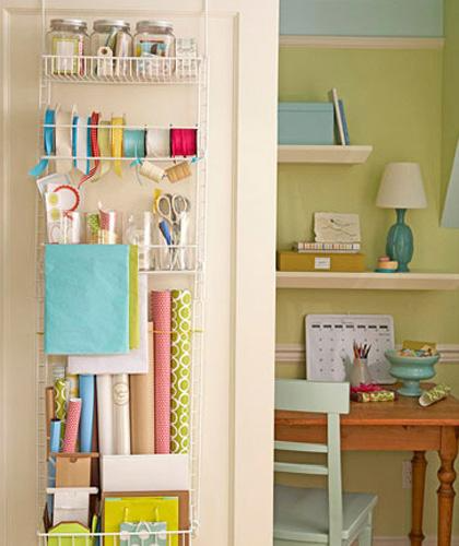 置物架或置物袋,能收纳很多小物品,门上方较高的位置可以放不常用的物件,下方可以随意依据喜好或使用频率放,这不仅能使小物品得到收纳,还能让原本单调的门后变得极具温馨感。