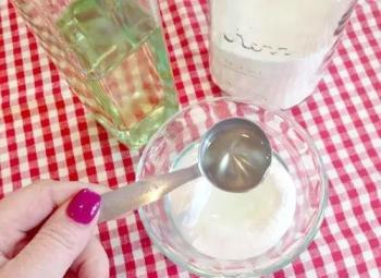 小半碗小苏打粉中加入一勺植物油,搅拌均匀。