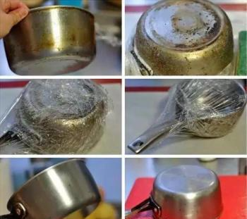去除锅底的黏着物,只需要小苏打和保鲜膜!