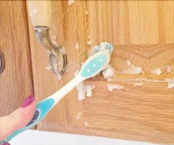 旧牙刷沾上水,仔细擦洗水槽~排水孔是重点清洁区域哦!