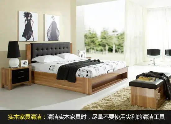 污渍清洁剂选择:清除污渍,需要用到专用的家具清洁剂。而不能选用油性的清洁剂来清洁,这样会使家具表面产生白化现象。此外也不能用酒精、汽油或其他化学溶剂,否则会给实木家具带来致命的破坏。