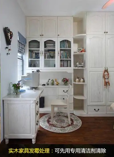 如果遇到实木家具发霉的情况,可先用干净软布蘸点中性清洁剂或家具专用清洁剂清除。然后在发霉的部分轻轻抹上一层家具蜡或家具专用精油,并在有霉味的地方放块香皂或装满晒干的茶叶渣的纱布包,有助消除霉味。