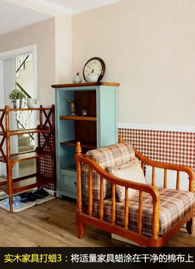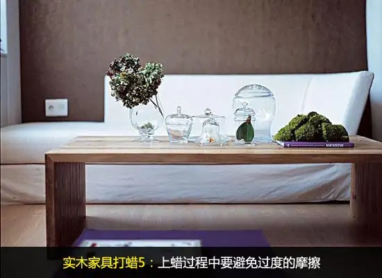 实木家具上蜡流程5:上蜡过程中要避免过度的摩擦,过度摩擦会损害家具表层,给实木家具难以修复的伤害。