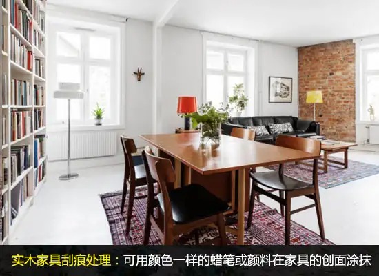 若家具漆面擦伤,未触及漆下木质,可用同家具颜色一样的蜡笔或颜料在家具的创面涂抹,以覆盖外露的底色,然后用透明的指甲油薄薄地涂上一层即可。