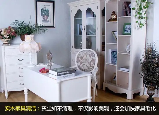 及时除尘:对于家具特别是实木家具而言,灰尘是第一杀手。一般用红木、柚木、橡木、胡桃木等制作的高档原木家具都有精美的雕花装饰,如果不能定期清洁,缝隙中不但容易积灰,影响美观,还会加快家具的老化速度。每天需对实木家具外表除尘,保证表面的光洁、干燥。