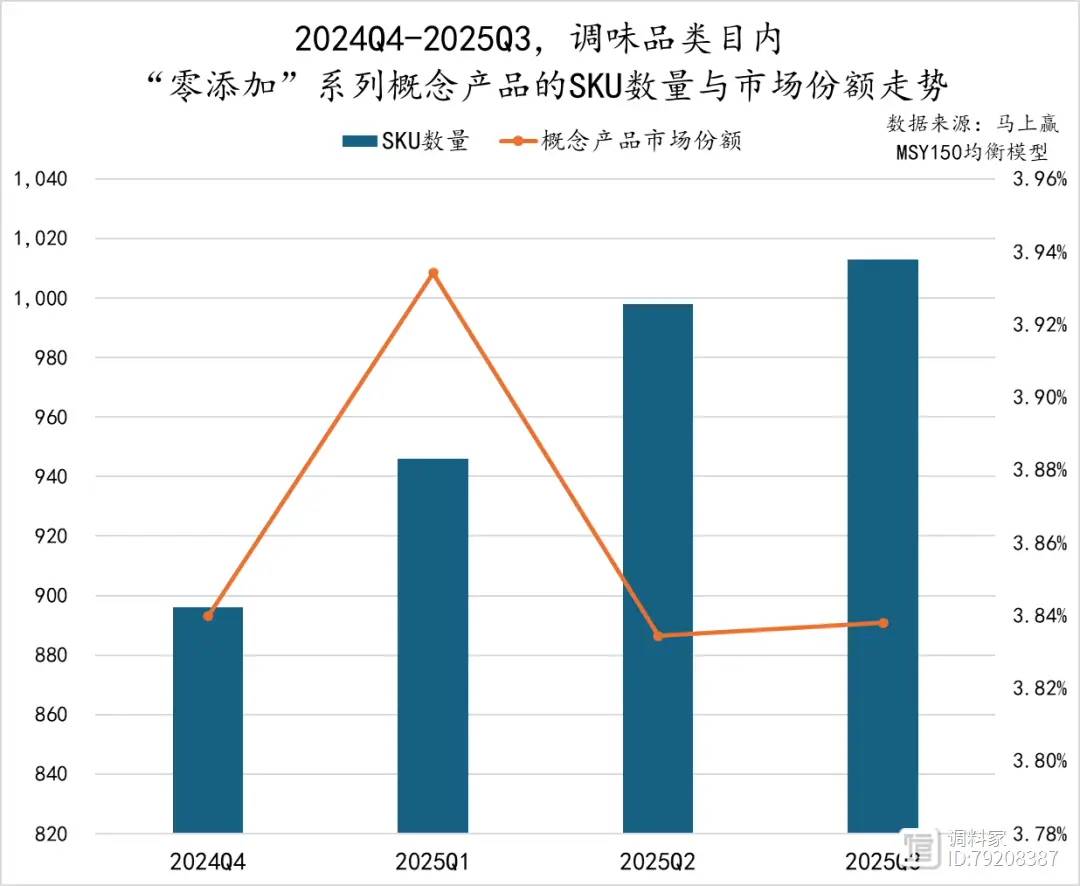 据马上赢情报站《2025Q3调味品市场回顾》显示,2025年第三季度“零添加”产品市场份额增速已明显放缓。