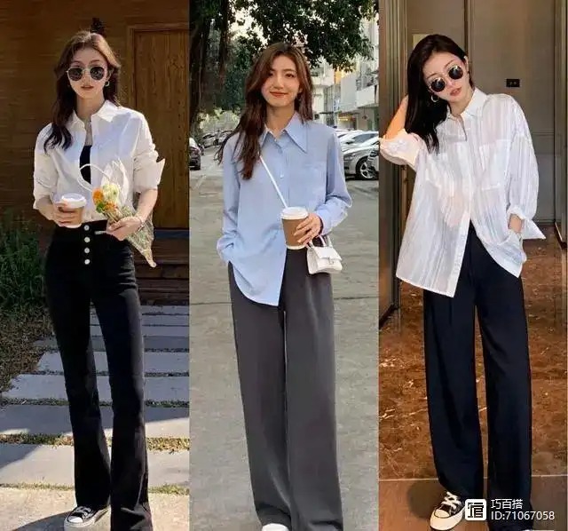衬衫解开纽扣多少以及位置,还能修饰身材。想要穿出辣妹风,紧身吊带+衬衫解开一半,上身性感又吸睛;想要穿出大长腿,衬衫下摆解开两三颗纽扣,露出下装的高腰线,上身潇洒有气场。