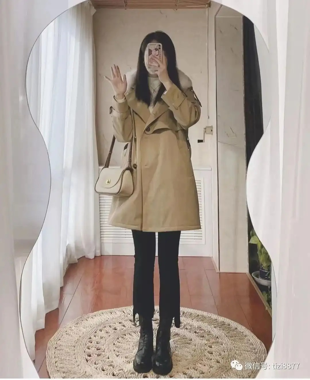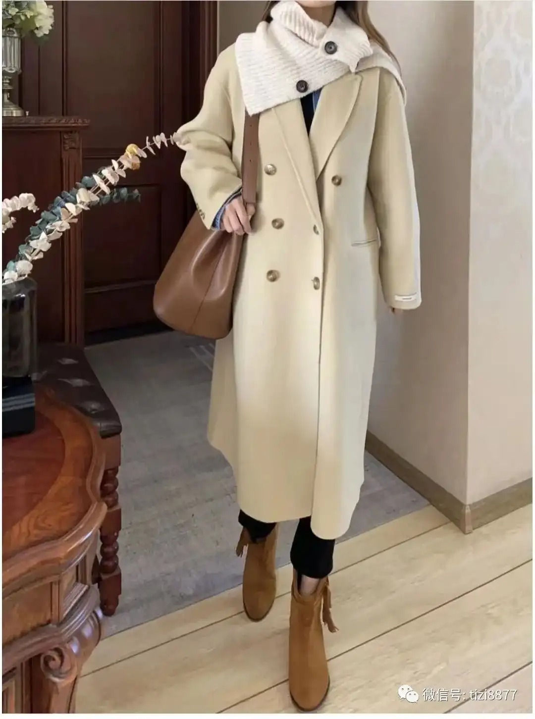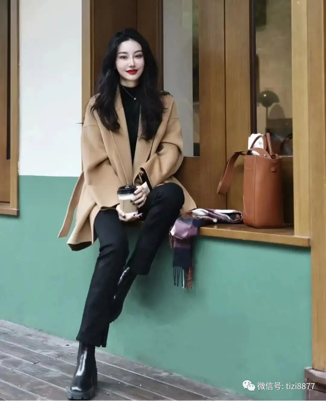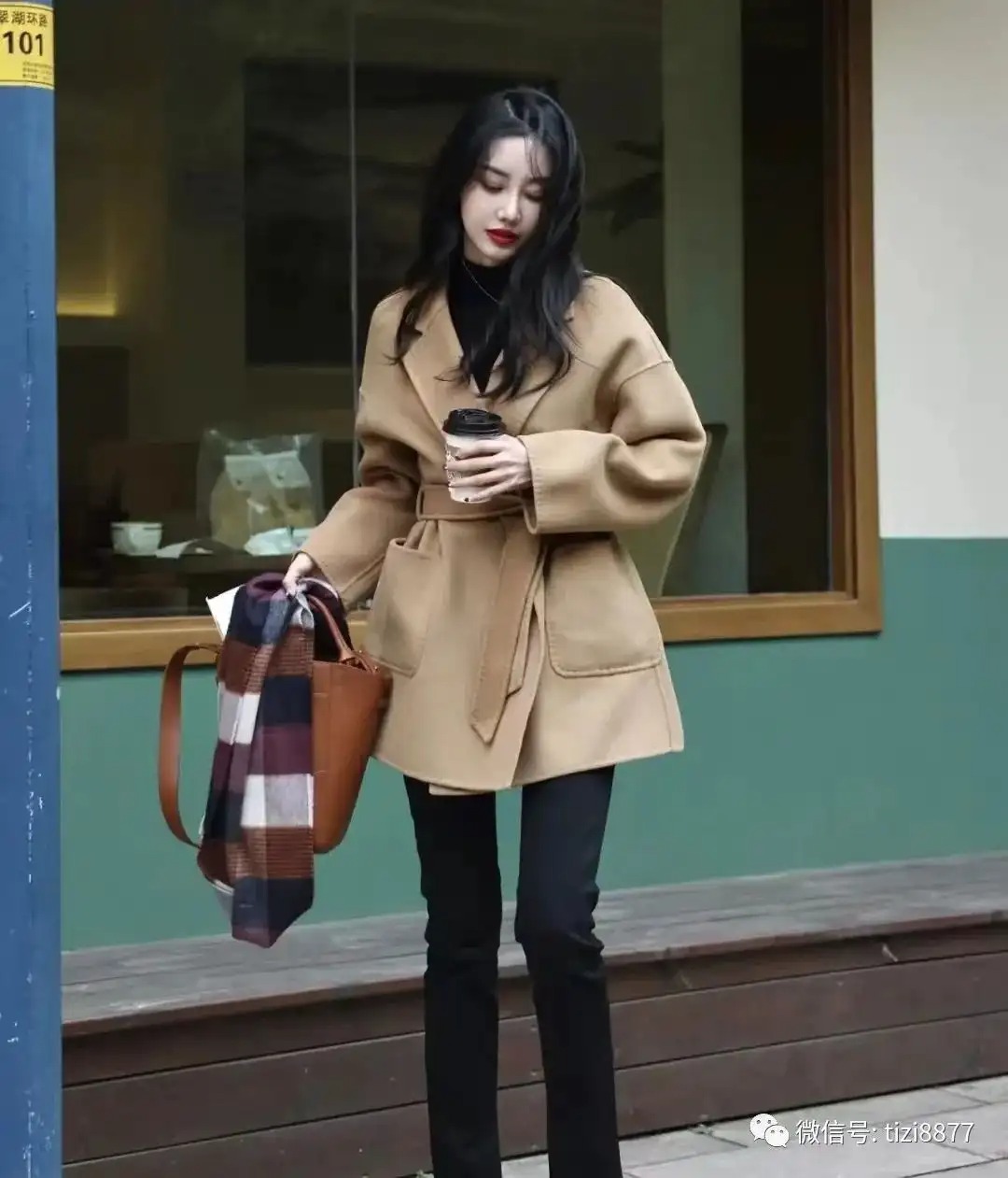 look5 驼色羊绒短大衣+黑色内搭