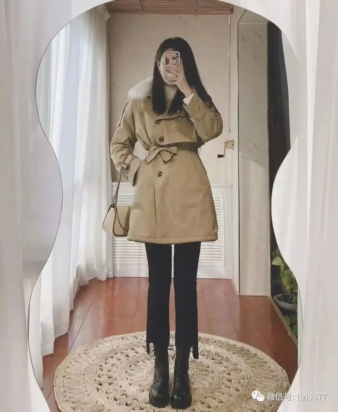 look15 卡其短风衣+小黑裤