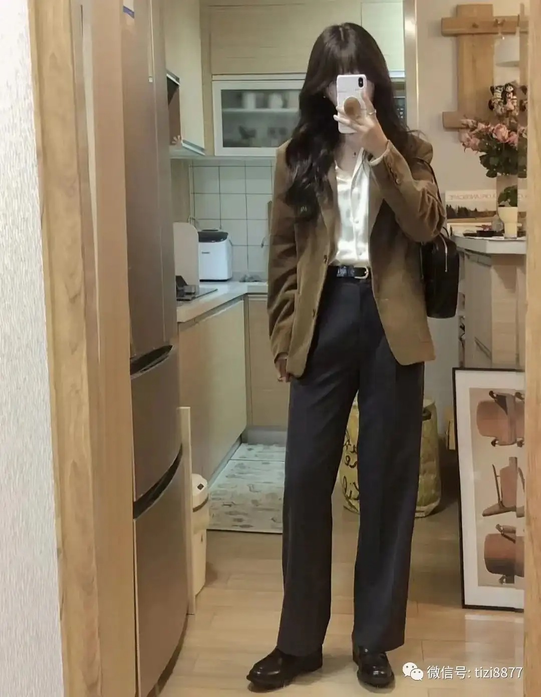 灯芯绒西装搭配衬衣+西裤+皮鞋一套韩里韩气,基础又好看的韩系通勤搭配~