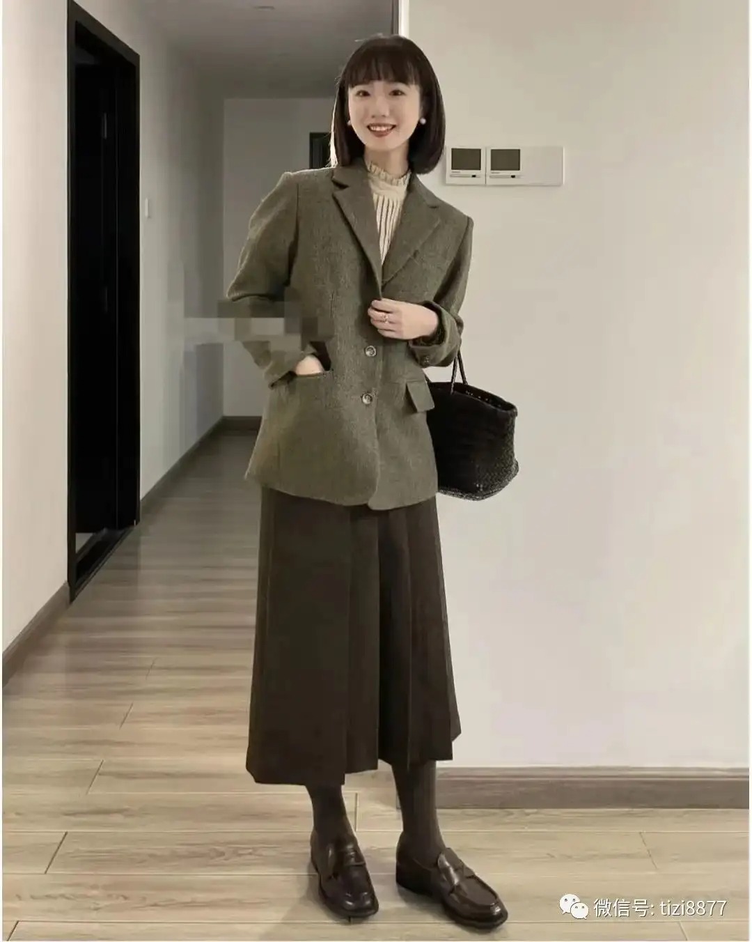 普通女孩的秋冬上班穿搭:这身搭配是个精致干练的上班族女孩,早上从一套舒心的穿搭,棕色格纹西装内搭灰色羊毛衫+米色直筒裤,一套简单大方,舒适又日常~~