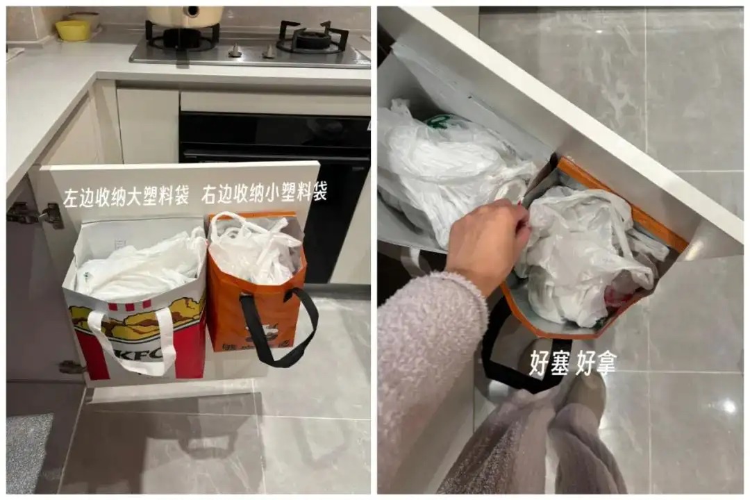 平时购物送的塑料袋你们都怎么处理?扔掉,总感觉有些浪费;留着,又特别容易凌乱。