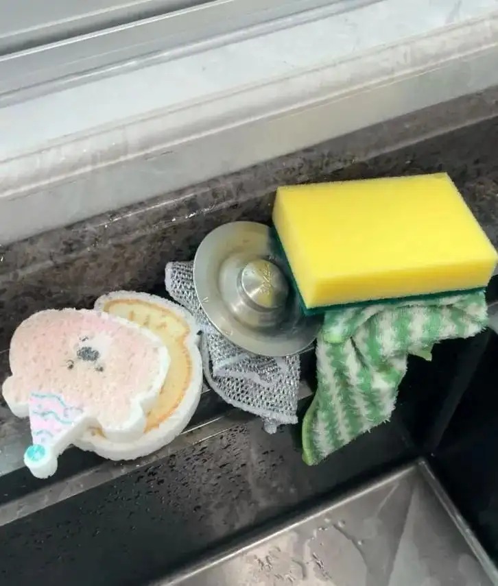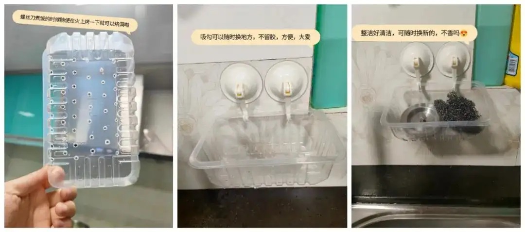 不仅如此,像水槽过滤网,同样可以采用这种方式来集中收纳,整洁又高效。