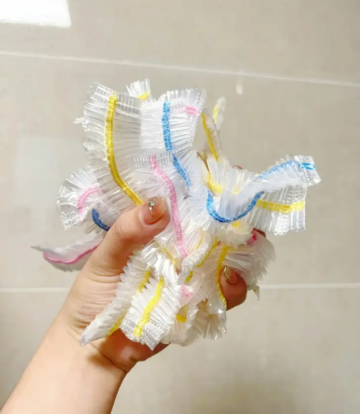 一次性保鲜膜套很好用,可一旦拆开了就会散落在抽屉里,既占用了空间,又十分凌乱。