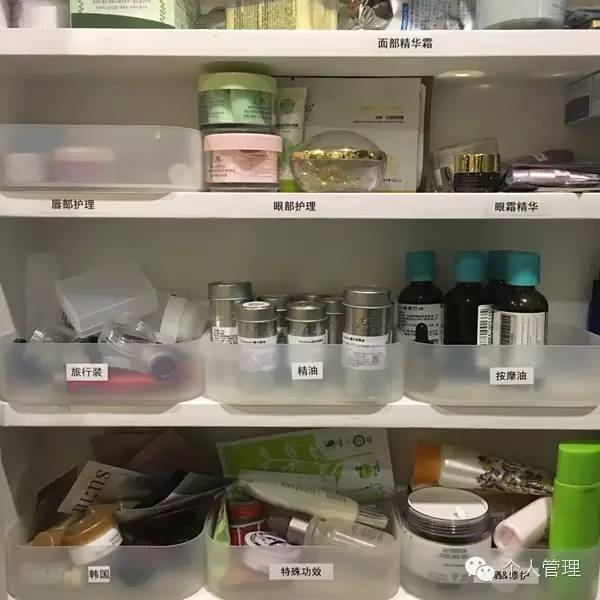 分类:同一类型的东西放在一起,可以用收纳框,收纳盒之类的,最好打上标签