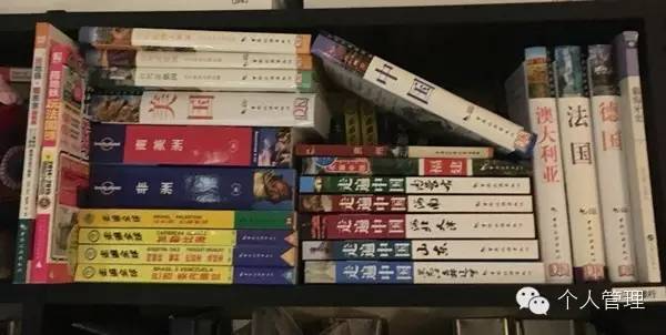男生女生都可以看下面这个例子,书柜上旅行的格,所有旅行书都放在一起。每个格右下角都打上标签,这样就能直接塞回去,整理的时候稍微码下就好了。特地放张完全没理的。