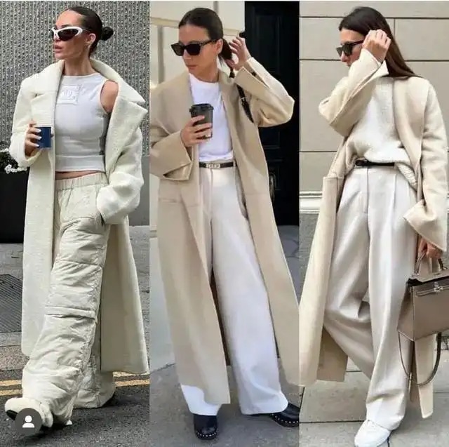 符合“遮”要求的单品并没有很多种,大家在选择时一定要注意,比较有投资价值的单品是毛呢大衣,宽松版型+廓形衣身+挺括面料+加厚款式集一体的单品,遮羞能力非常强。
