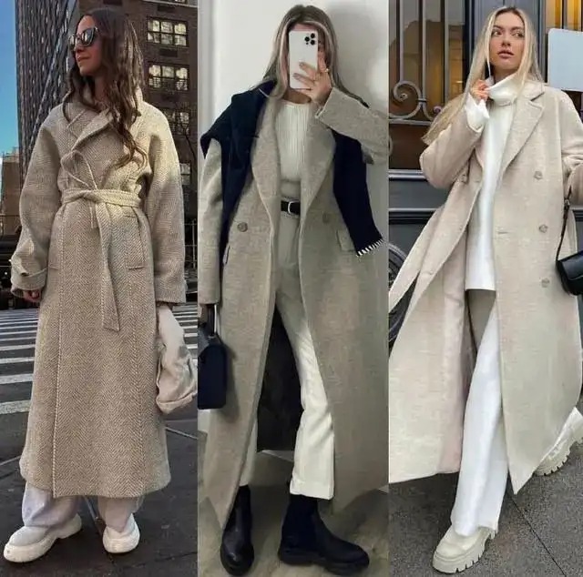 除此之外,大家在挑选适合遮住屁股和大腿的大衣时,还需要注意毛呢大衣的款式,比较理想的款式是廓形大衣,比较希望大家敬而远之的单品是紧身大衣,太过贴身的大衣,很难给人留下苗条纤细的效果,甚至大腿、屁股部位的缺陷会被暴露得更加明显,多少有点得不偿失。