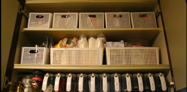 下面的橱柜:善用各种置物架、拖拉篮,对物品进行分类储存