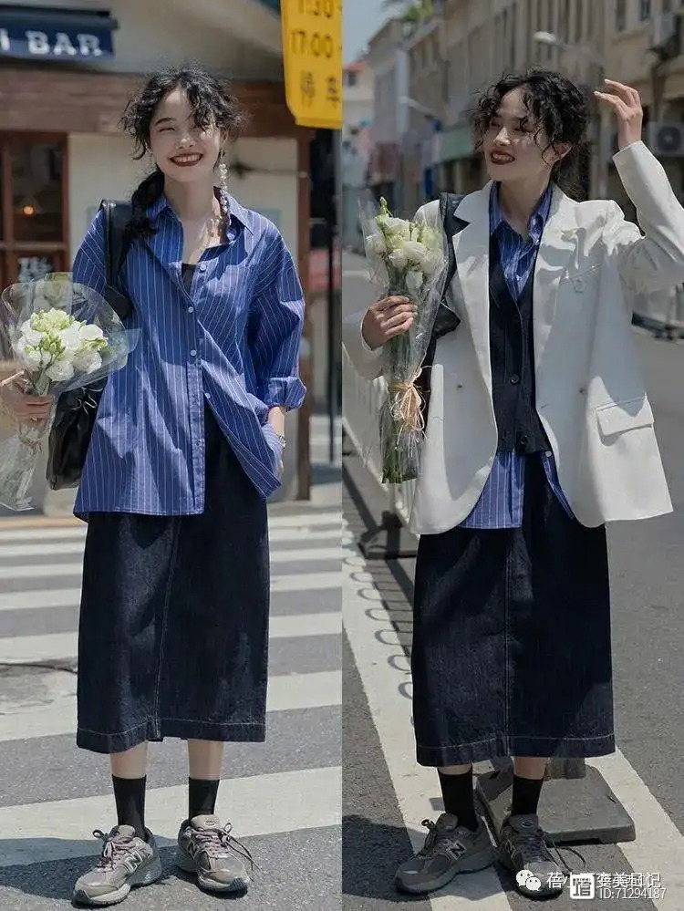 衬衫是基础款,在秋日真的很流行,用简单的衬衫可以去搭配你各种喜欢的服装,有些小姐姐就会用衬衫去搭配这些牛仔半身裙,这样的搭配方式也很时尚,一条牛仔半身裙配上简单的衬衫就可以修饰我们的身材喽。