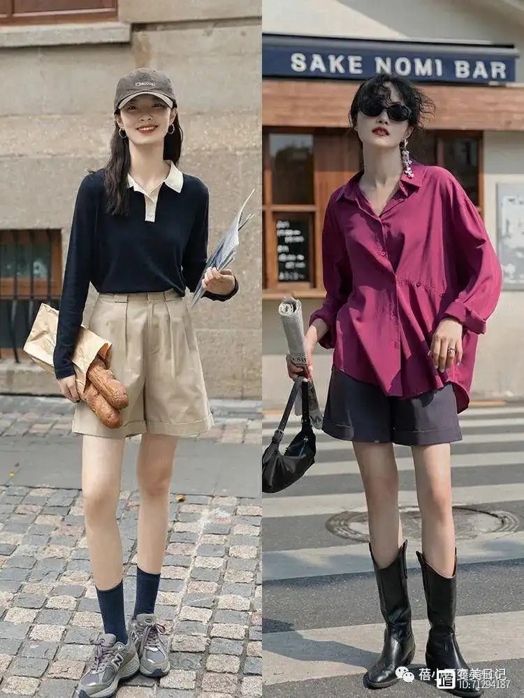 现如今这个季节穿衣搭配,简单清爽最好,我们不要把自己完全给包裹住,毕竟气温还没有那么低,如果你想要穿的时尚清爽,那我们还是可以尝试露腿的穿搭,这个时候你可以在上半身穿的稍微厚实一点,然后把你的双腿露出来,这样搭配也是非常有利于修饰身材的,而且增高显瘦的效果也挺不错的。