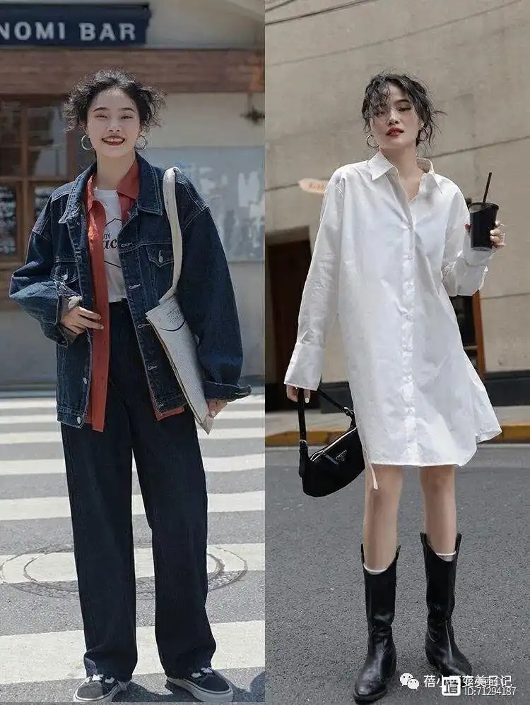 其次,很多小姐姐在如今这个季节也会去考虑用松紧结合的方式来修饰身材,你如果上半身微胖,那你可以在如今这个季节都给自己购买一些宽松的外套,比如下面这种oversize的衬衫,或者是宽松的牛仔外套,休闲时髦又很百搭,穿起来一点都不觉得难驾驭。