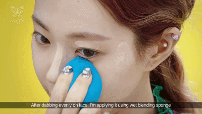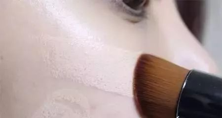 将粉底点涂到脸上,然后用粉底刷或者是半干的美妆蛋将粉底液推开,上色要均匀,鼻翼、眼角、嘴角等细节位置也要涂到