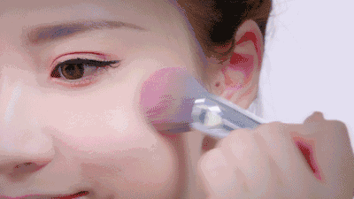 用腮红粉扑或者是腮红刷蘸取适量的腮红,刷在苹果肌的位置上,腮红可以起到减龄、提气色的作用