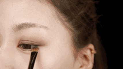 用眼影刷蘸取哑光咖啡色的眼影,涂抹在上下眼尾的后二分之一处,达到深邃眼睛的效果,让眼睛看起来更有神、更大