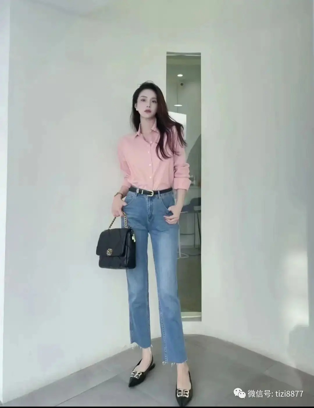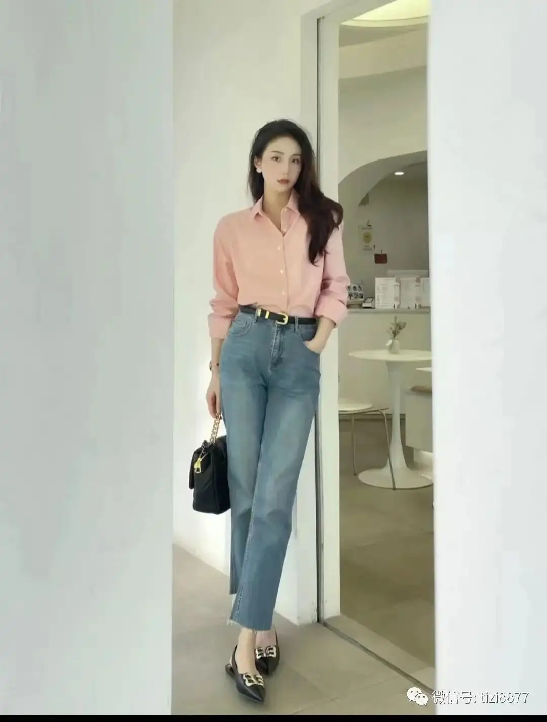 粉色的衬衫+直筒牛仔裤也太温柔了吧!女孩子一定要拥有一件粉色的衬衫,因为真的特别显白,并且这个粉色是高级的灰粉色,就是平时很挑衣服穿的人都非常好驾驭!想要复古风的感觉一定要搭配直筒牛仔裤,就算是身型不好看的姐妹都可以穿,主要面料穿起来非常舒服。